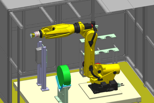ファナック製の協働ロボットを使用。 手作業の自動化を検討・検証するための実験機。